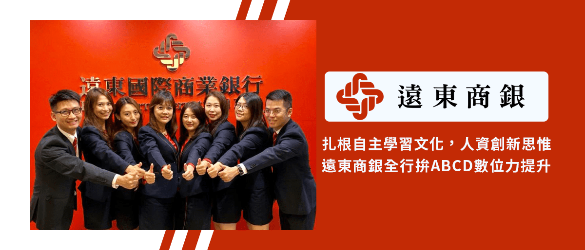 2019年4月開始遠東商銀導入1200人規模的數位力提升訓練,以數位金融 A (人工智慧,AI)、B (區塊鏈,Block Chain) 、C (雲端,Cloud) 、D (大數據 ,Big Data) 為主軸,全面晉級所有行員的金融知識力與科技力,透過線上線下學習方案與多元的激勵措施,2019年全行人均數位學習時數9.4小時,至2020年6月全行人均學習時數已達9.2小時,全體員工積極的自主學習來跟上數位金融浪潮。