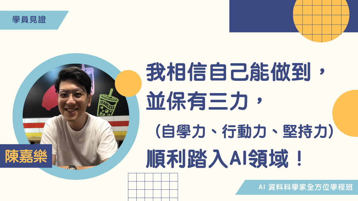 嗨~大家好!我是陳嘉樂,首先,感謝緯育TibaMe讓我有機會跟大家分享,我是參加緯育 TibaMe 的 AI 資料科學家-【全面應用方案】-第三期的學員;同時,我也是個從設計領域轉換到金融保險業,而現在即將要踏入AI領域的轉職者。
