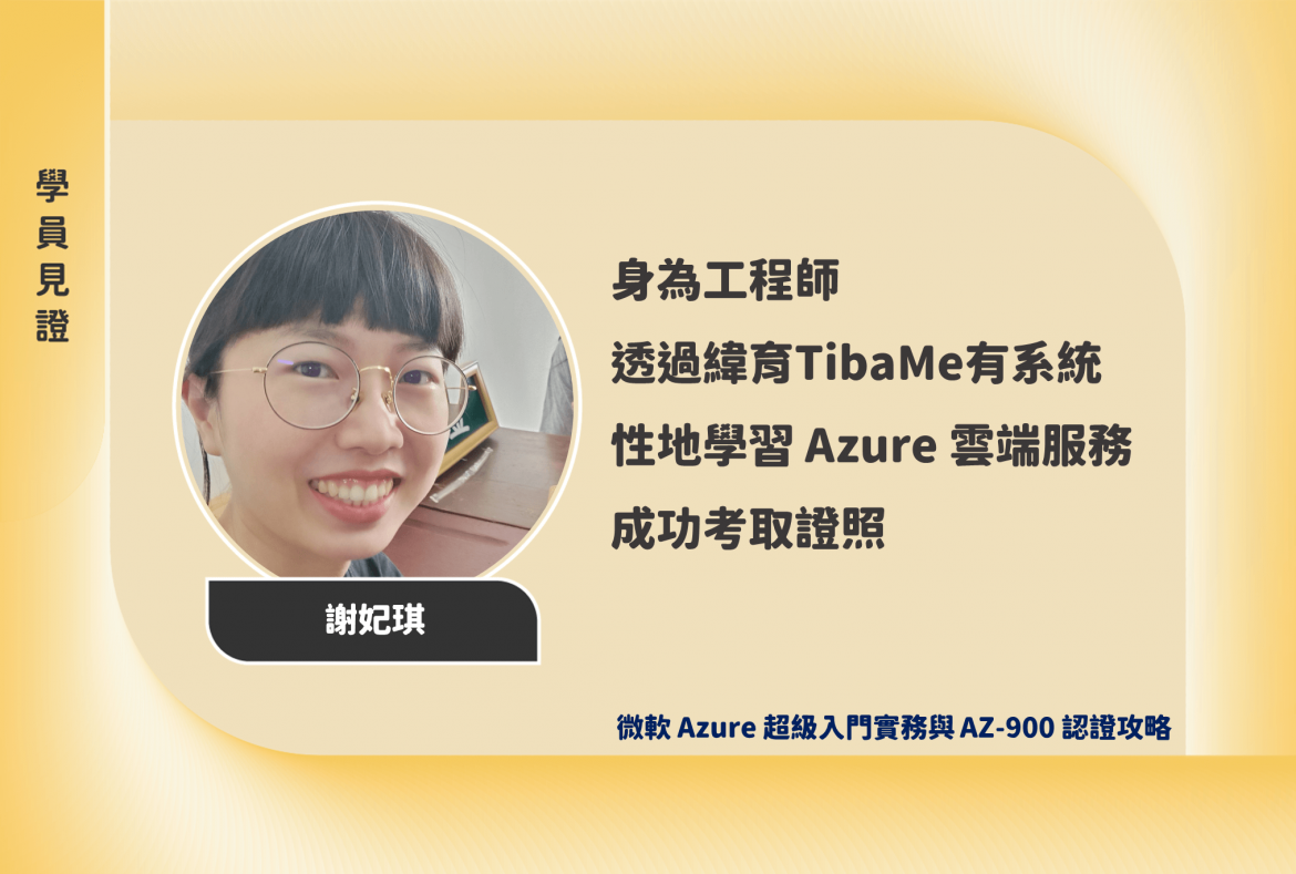 我非常喜歡「微軟 Azure 超級入門實務與 AZ-900 認證攻略」這門課的編排方式,課程是以主題式的方式來教學,講師會用淺白的話語來介紹地端與雲端的差異,讓初步踏入這個領域的我,知道雲端是什麼後再逐一吸收 Azure 雲端有的主要服務,如運算、儲存、網路等,讓我可以系統性地、按部就班地學習各領域的知識。