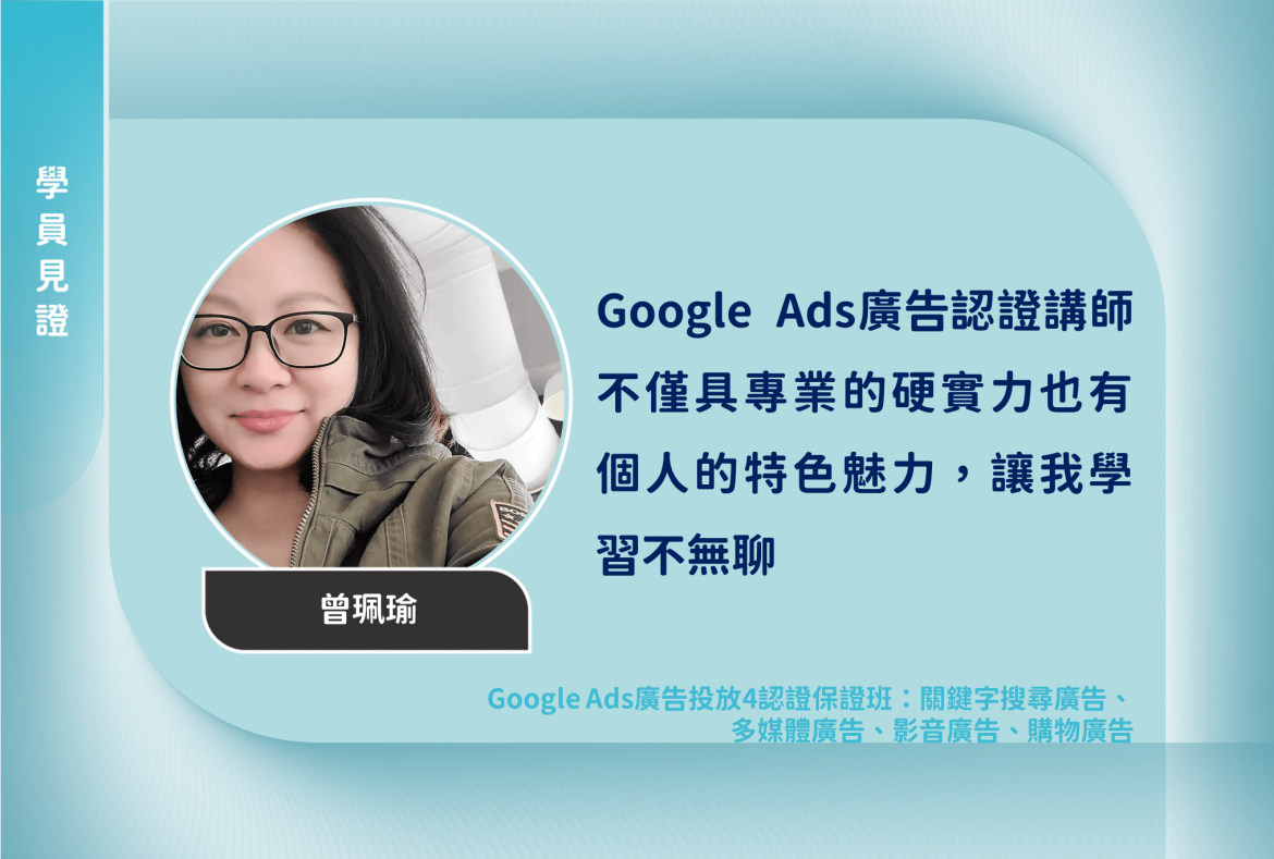 了解更多:Google Ads廣告投放4認證保證班:關鍵字搜尋廣告、多媒體廣告、影音廣告、購物廣告