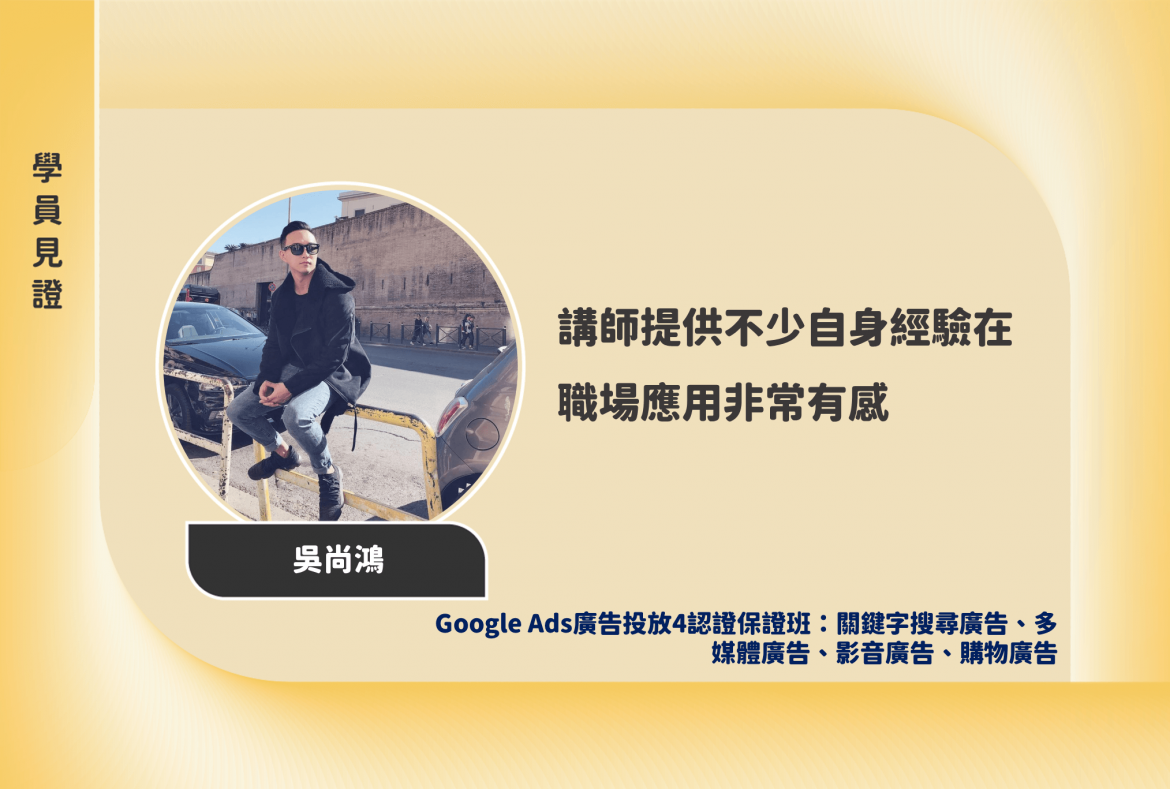了解更多:Google Ads廣告投放4認證保證班:關鍵字搜尋廣告、多媒體廣告、影音廣告、購物廣告