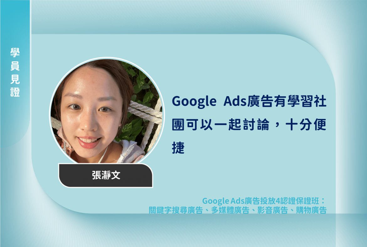 了解更多:Google Ads廣告投放4認證保證班:關鍵字搜尋廣告、多媒體廣告、影音廣告、購物廣告