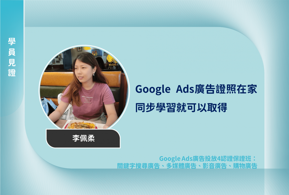 了解更多:Google Ads廣告投放4認證保證班:關鍵字搜尋廣告、多媒體廣告、影音廣告、購物廣告