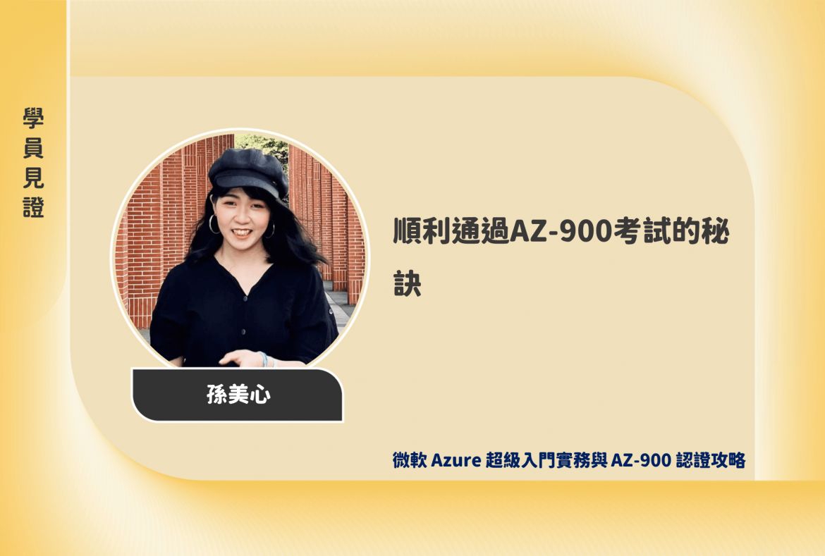 當初決定準備AZ-900考試時,受困於網上資源不知何時開始,微軟的官方資源雖然豐富,但對於初學者,真的會不知道從何開始。所幸在線上尋找一下建議跟教學時,發現緯育TibaMe微軟 Azure 超級入門實務與 AZ-900 認證攻略 ,非常有架構、邏輯性的課程規劃,加上Alan老師非常清晰易懂的教學內容與方式,使我能快速地對Azure有一個初步了解。