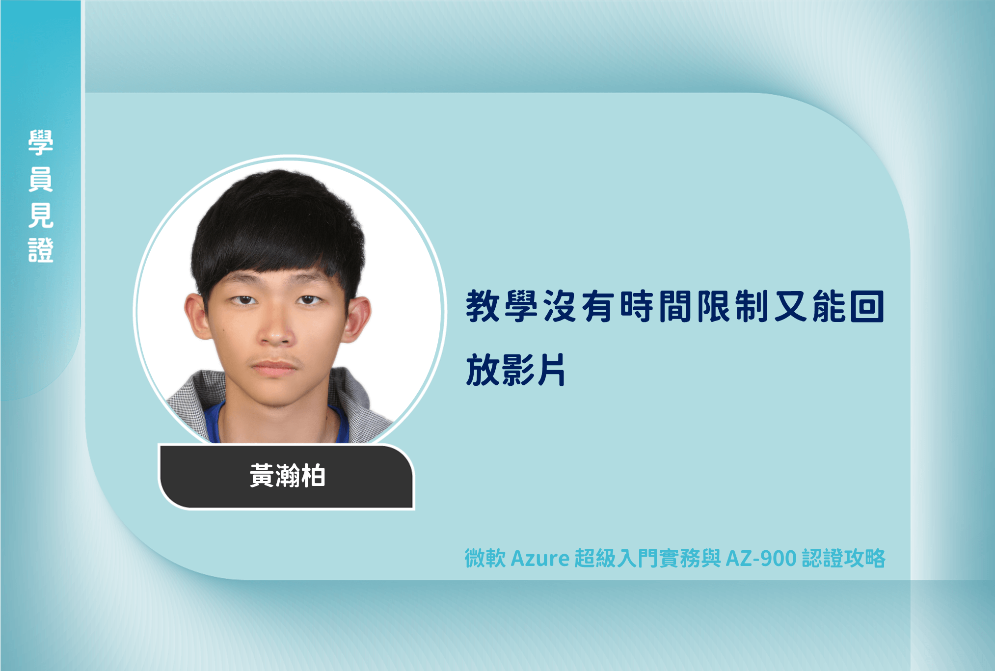 我這是我第一次參加TibaMe的課程,平台裡面提供各式現在趨勢的課程。微軟 Azure 超級入門實務與 AZ-900 認證攻略課程的內容安排直切切入重點,可以幫助我在幾個小時內可以掌握課程精華。另外感謝這樣的平台沒有時間限制又能回放影片,讓忙碌的上班族利用瑣碎的時間進修,網站又貼心的提供聊天機器人服務,在系統操作遇到問題時,可以有小編解答,蠻令人安心的