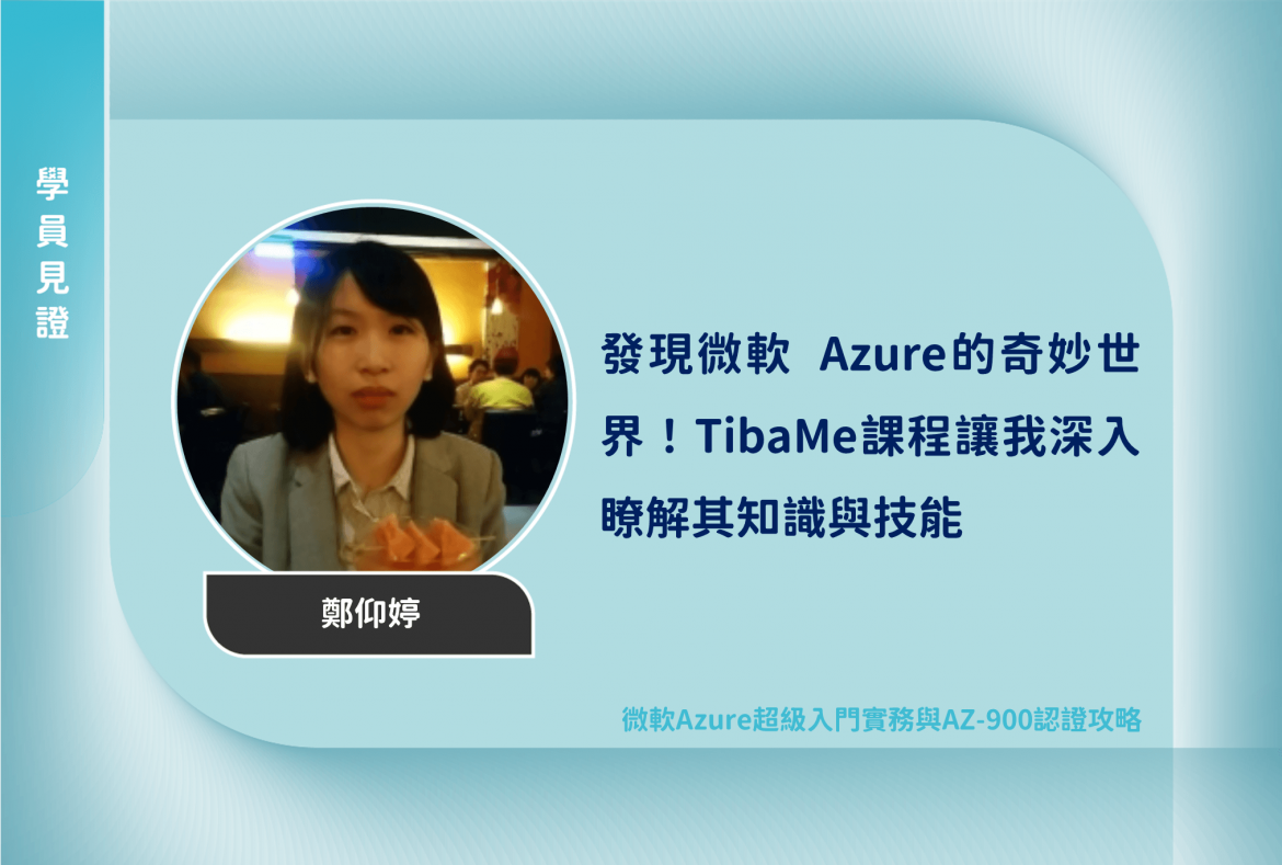 我由衷感謝 TibaMe 課程團隊和講師們為我提供了這麼好的學習機會。他們的專業知識和教學方法使我能夠更輕鬆、有趣地學習微軟 Azure。他們熱情洋溢地教授課程,讓我對這個領域充滿了熱愛和興趣。無論是課堂上的實例演示,還是課後的問題討論,都讓我深入理解微軟 Azure 的應用場景和技術細節。這次學習經歷對於我個人的職業發展具有重要意義,也為我打開了更多的機遇和可能性。我會繼續努力學習,將所學知識融入到實踐中,並且強烈推薦 TibaMe 的微軟 Azure 超級入門實務與 AZ-900 認證攻略課程給所有對於微軟 Azure 感興趣的人,相信你們也會像我一樣受益良多!