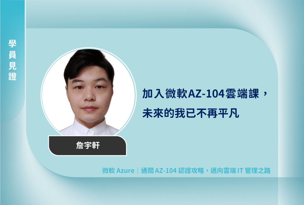 我得說,這門微軟AZ-104認證 邁向雲端 IT 管理之路課的老師真的是教育界的瑰寶!從他對每一個學生問題的回覆,到每次課後的指導,我都深深地感受到他的用心和熱情。在這樣的引導下,我不僅掌握了雲端技術,還對未來充滿了期待和信心!