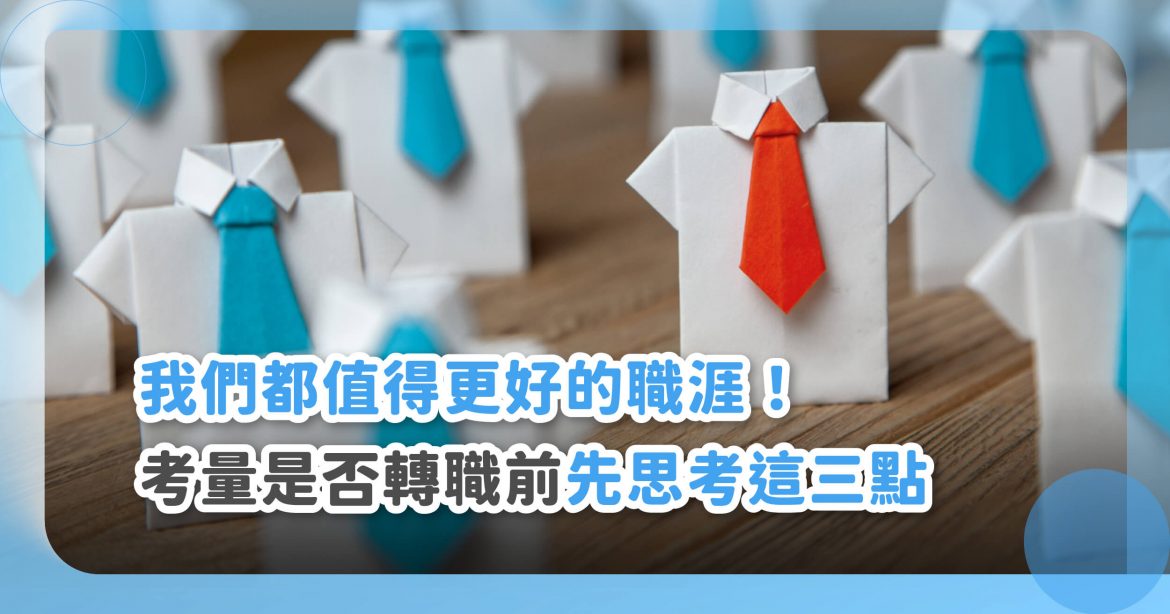 不論轉職的起心動念為何?我們都期待更好的職涯,隨著工作年資愈長,轉職機會成本愈高,要更審慎評估是否值得轉換,若暫時沒有適合的機會,也不用急就先盡力完成眼前事吧!
