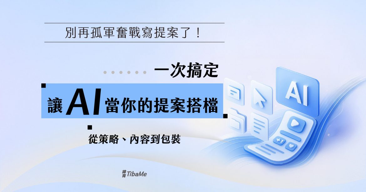 在這個高效率、高期待的職場環境中,成功的提案不該是一個人熬夜撐出來的結果。讓 AI 當你的提案搭檔,從策略、內容到包裝,幫你節省時間、提升品質,也讓你保有創意與思考的空間。