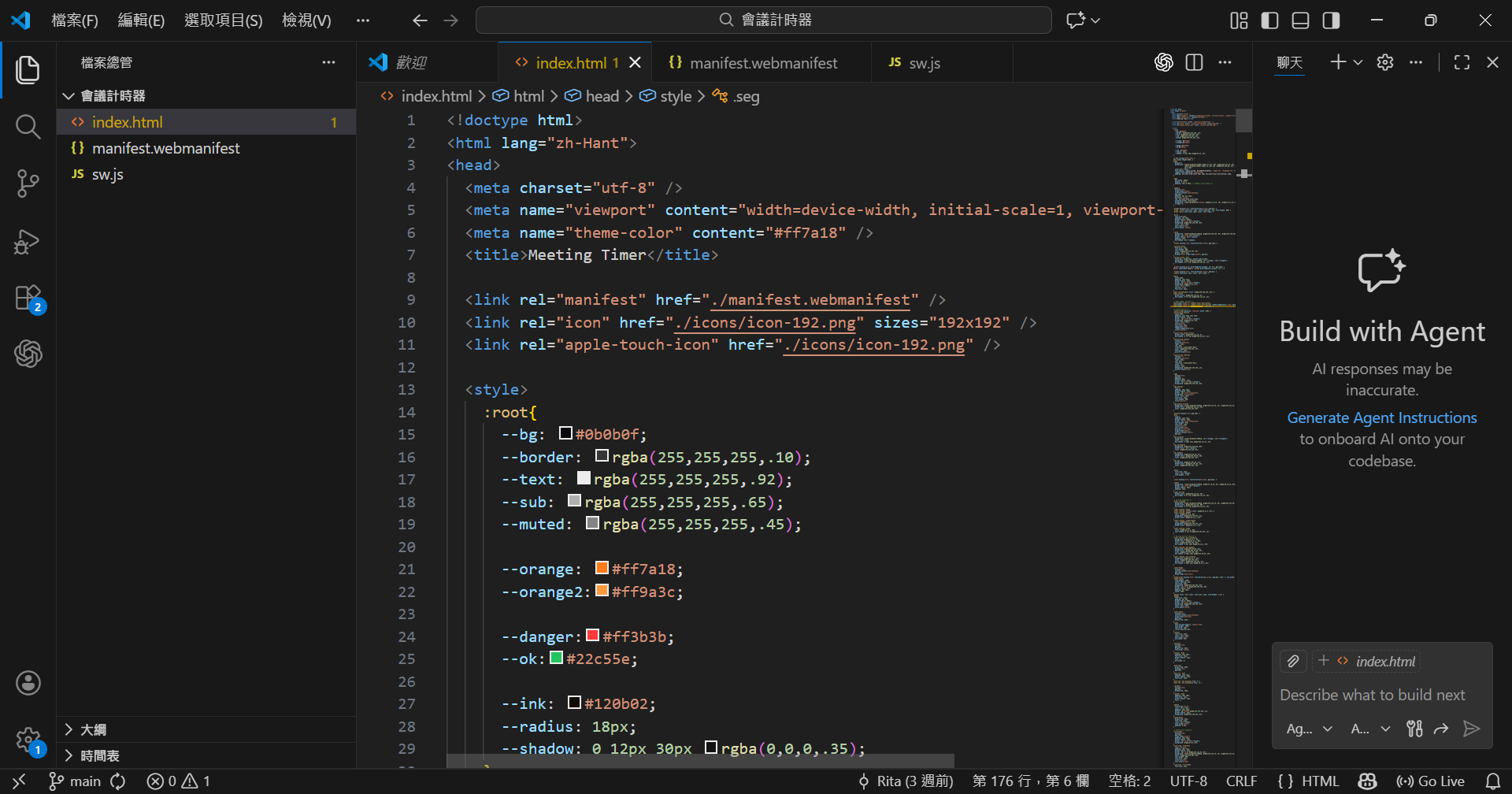 本次開發,小編使用 ChatGPT 作為主要的 Vibe Coding 協作夥伴,再運用 VS code 開發環境來執行程式碼,並於期間透過 Git 控制版本,這樣就不用擔心修改後上一個版本會不見啦 !