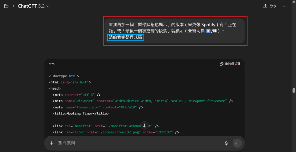 Step 3|用 ChatGPT 生成倒數計時器程式碼