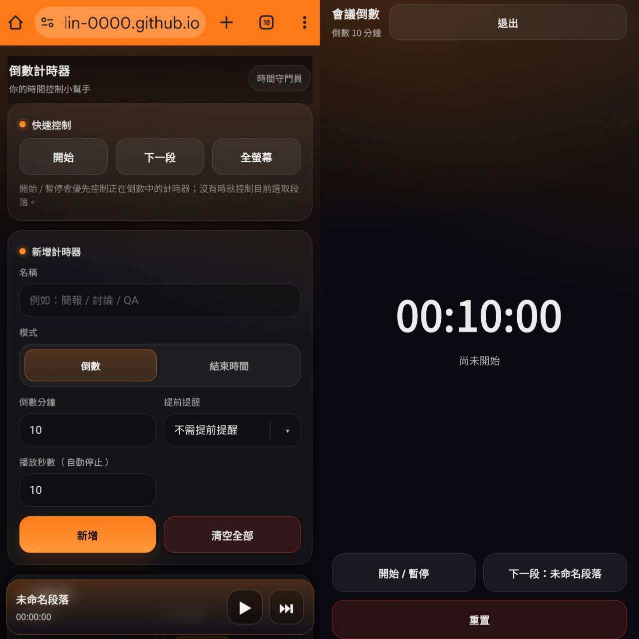最後一步,就是把專案部署到 GitHub Pages,這也是很多新手最有成就感的一刻。打開網址,就能使用倒數計時器,也能分享給朋友使用。因為小編在過程中也讓 AI 加上了 PWA 的功能,可以將網頁加入手機主畫面或桌面,就可以創造手機 App 的效果!